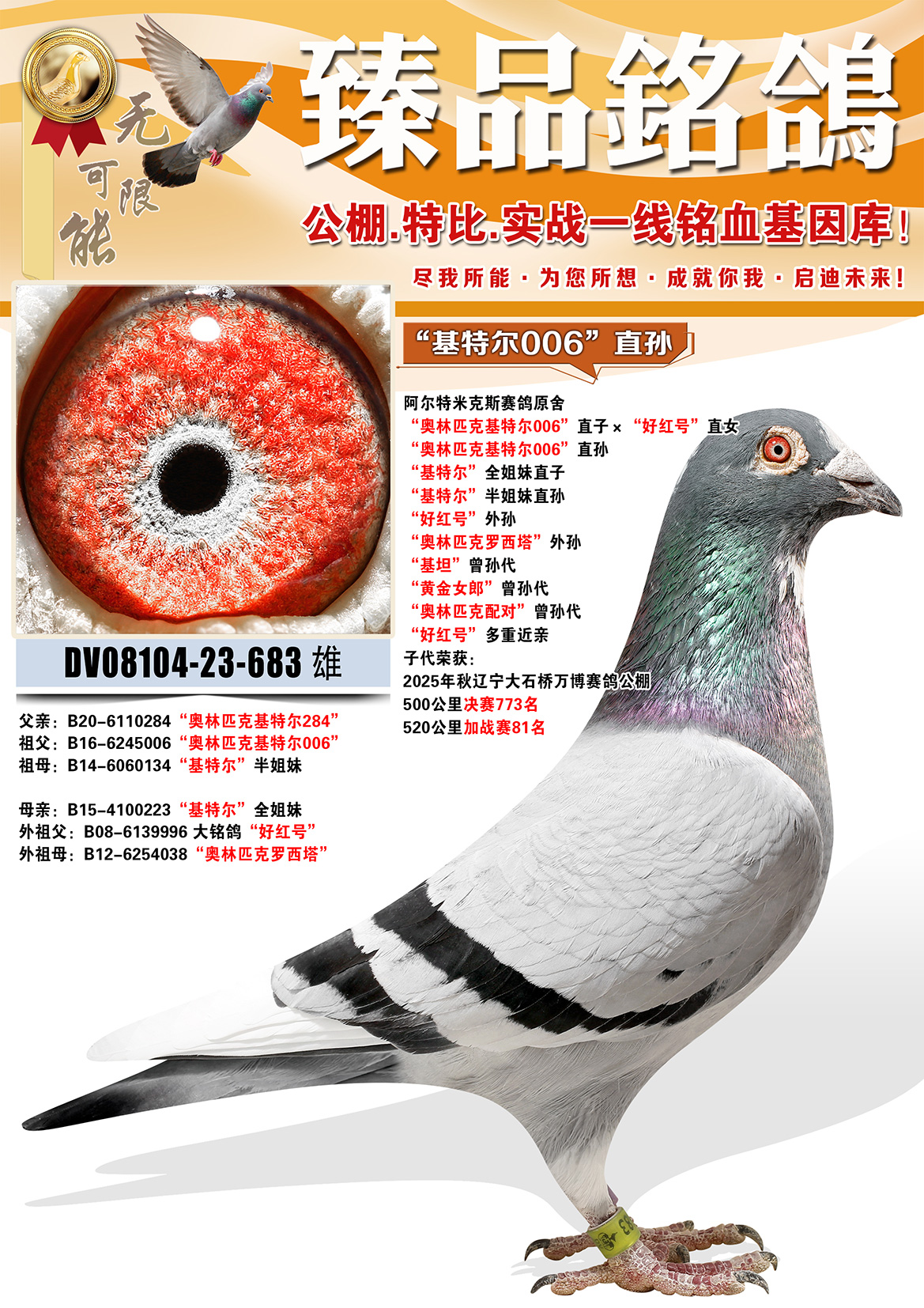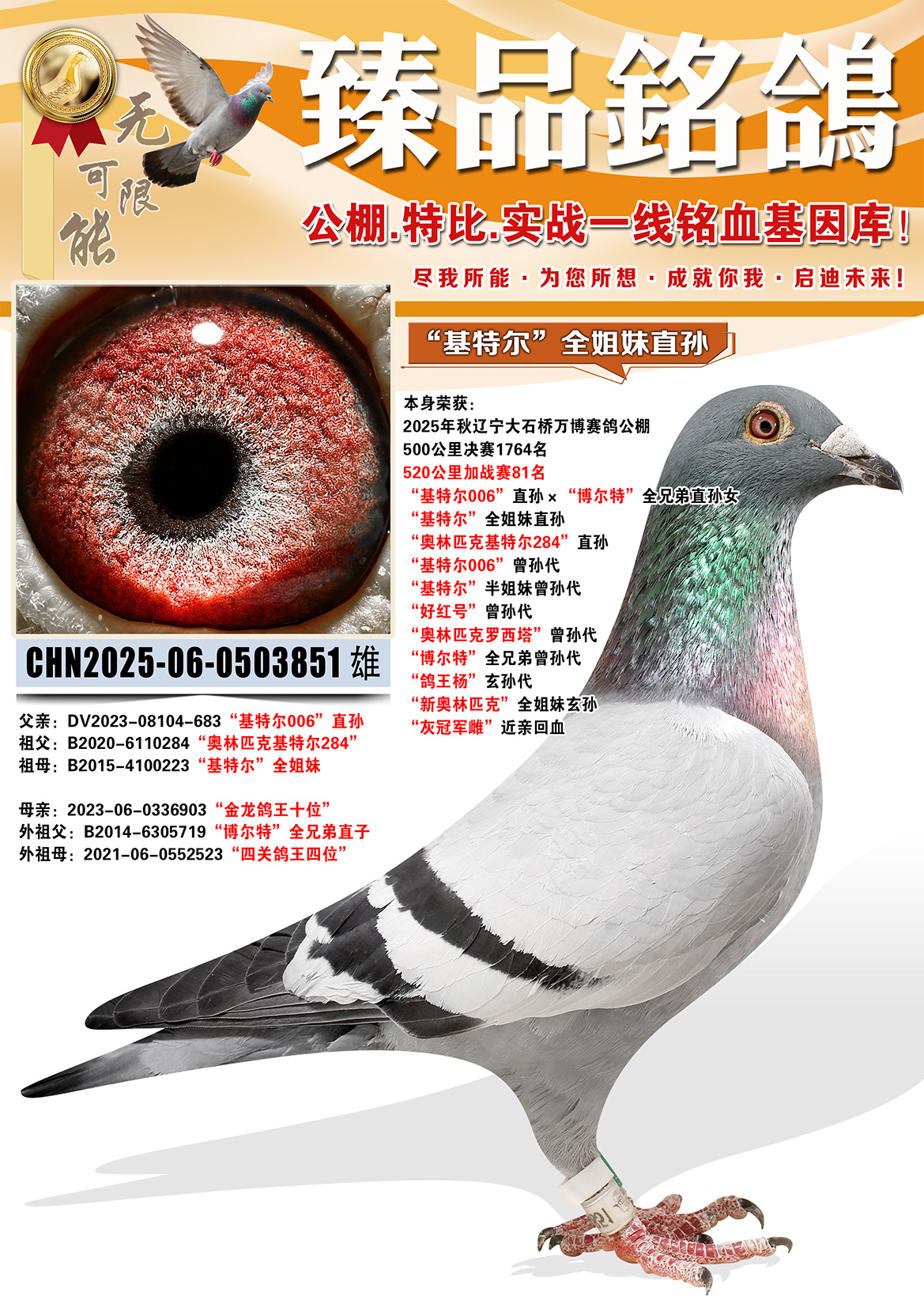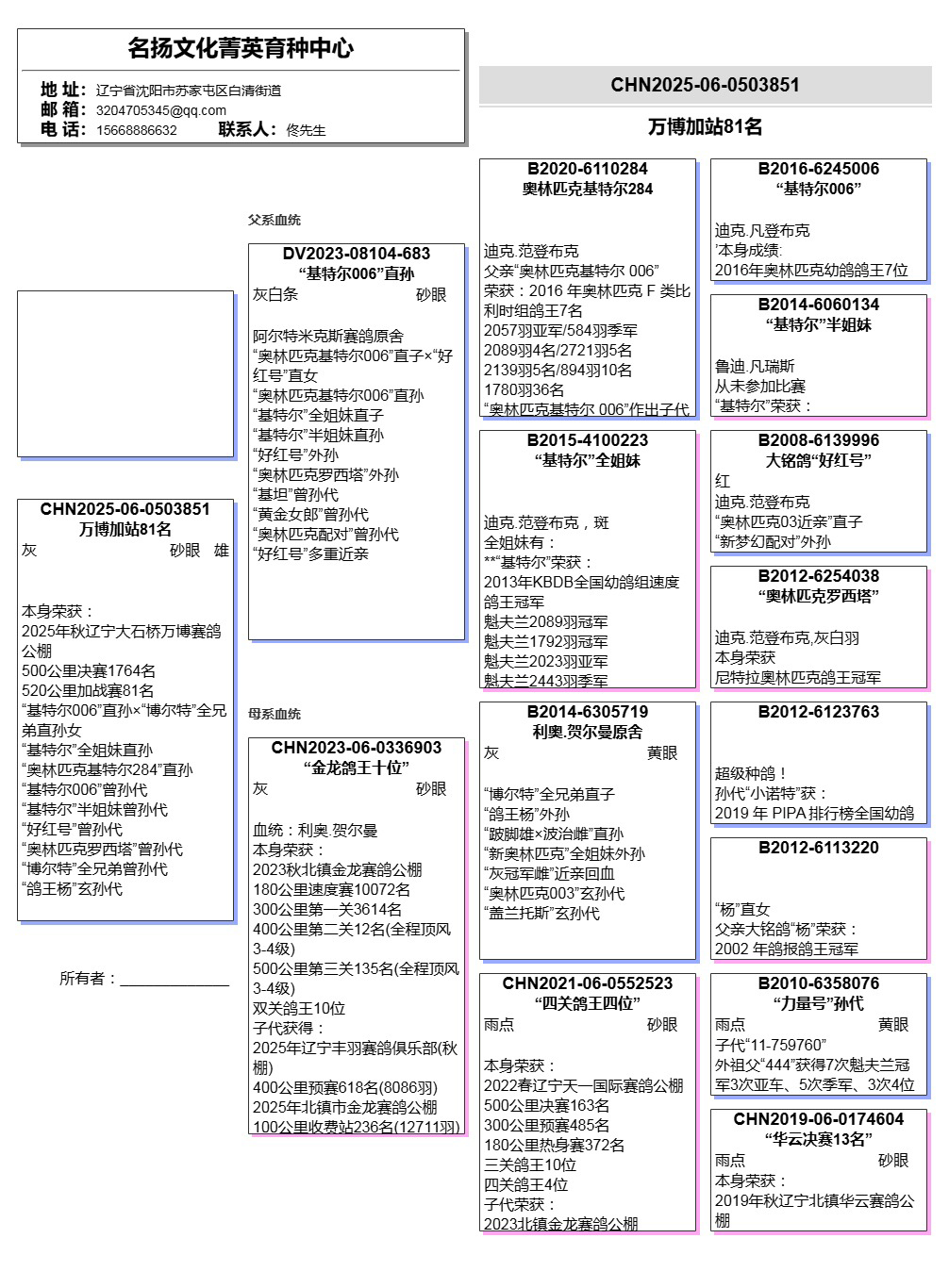 所有拍卖鸽全部血统真实!!个人鉴鸽观点不一,飞不飞天上见.血统成绩第一