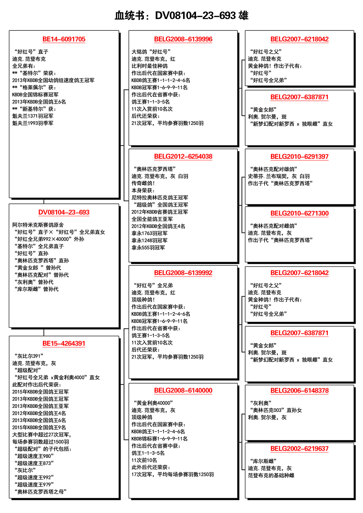 所有拍卖鸽全部血统真实!!个人鉴鸽观点不一,飞不飞天上见.血统成绩第一