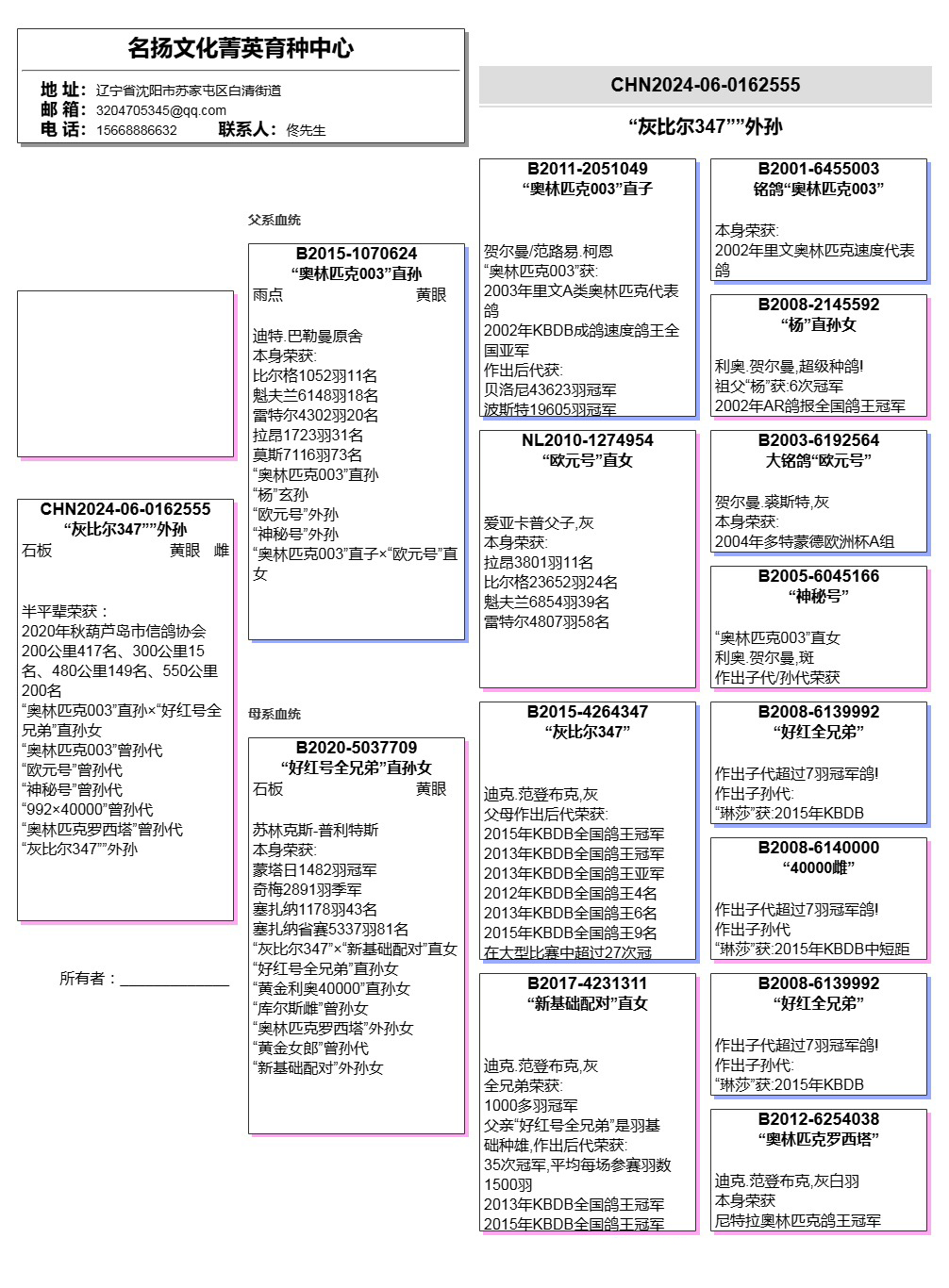 所有拍卖鸽全部血统真实!!个人鉴鸽观点不一,飞不飞天上见.血统成绩第一