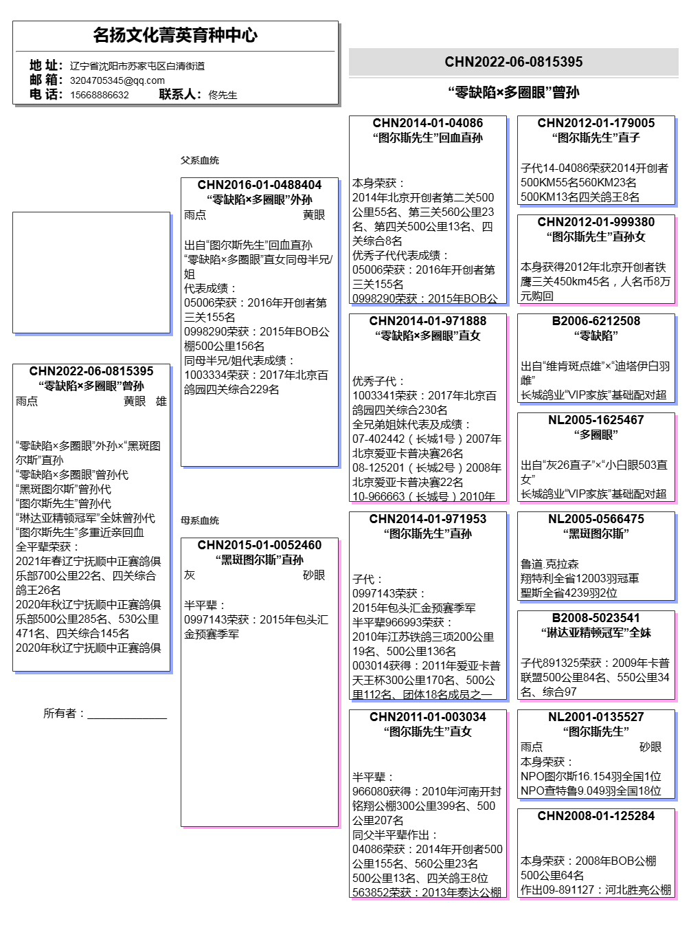 所有拍卖鸽全部血统真实!!个人鉴鸽观点不一,飞不飞天上见.血统成绩第一