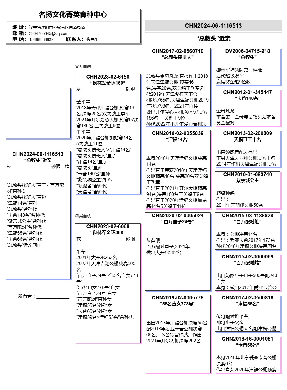 所有拍卖鸽全部血统真实!!个人鉴鸽观点不一,飞不飞天上见.血统成绩第一