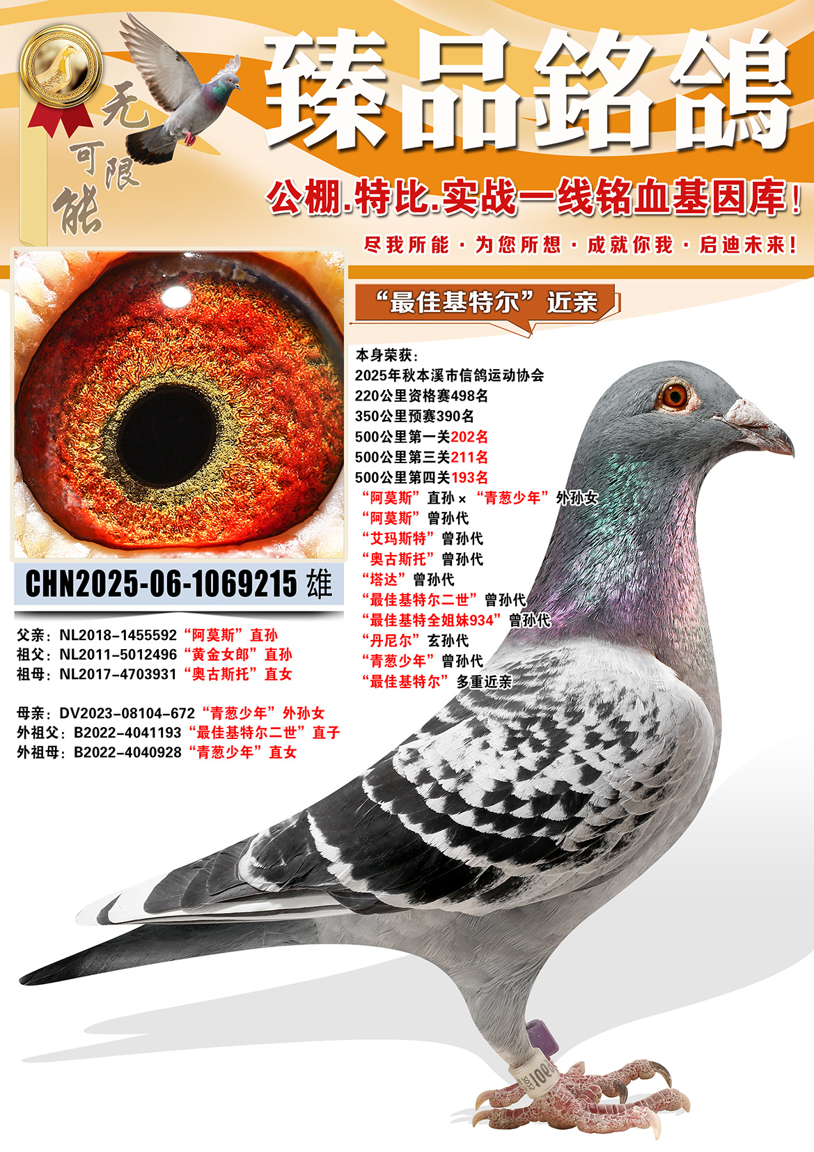 所有拍卖鸽全部血统真实!!个人鉴鸽观点不一,飞不飞天上见.血统成绩第一