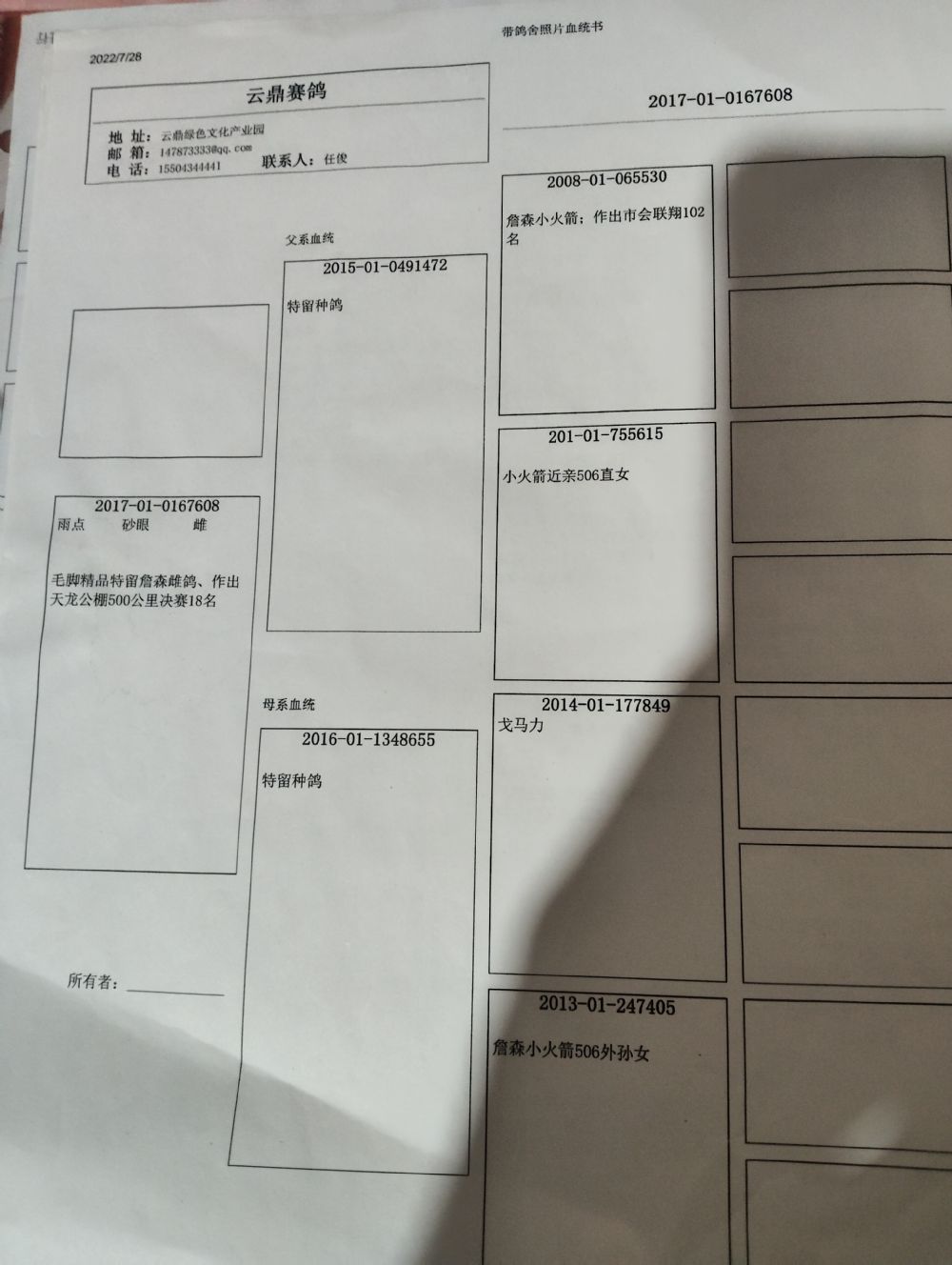 鸽子有血统书的以上传,没有上传的不提供血统书。介意勿拍!