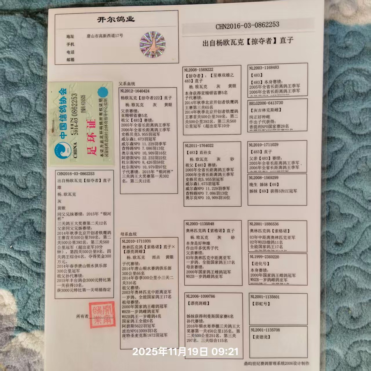 上传血统书随鸽发出 没有上传的就是没有 介意勿拍