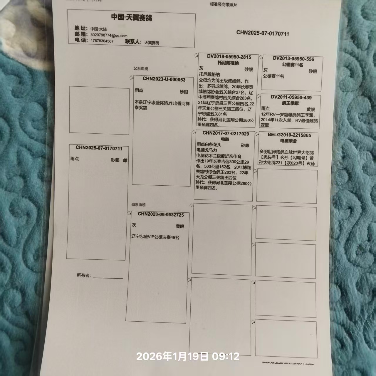 上传血统书随鸽发出 没有上传的就是没有 介意勿拍