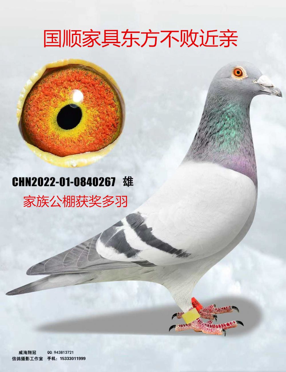 左右脚足环位置不一样的情况说明~在照片制作中,通常会使用PHOTOSHOP的图片翻转功能,造成视觉上足环位置的颠倒(左右脚互换),鸽子足环的位置以实物为准,照片不能作为参考依据!!
