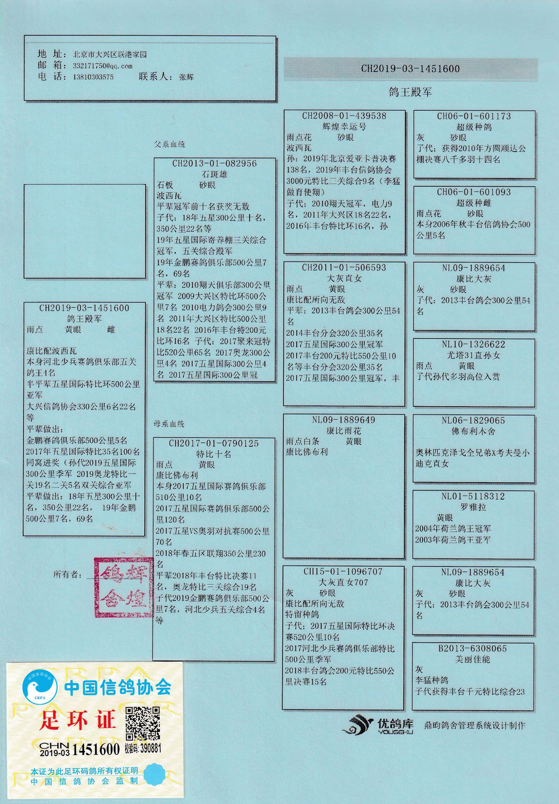 所有拍卖鸽全部血统真实!!个人鉴鸽观点不一,飞不飞天上见.血统成绩第一