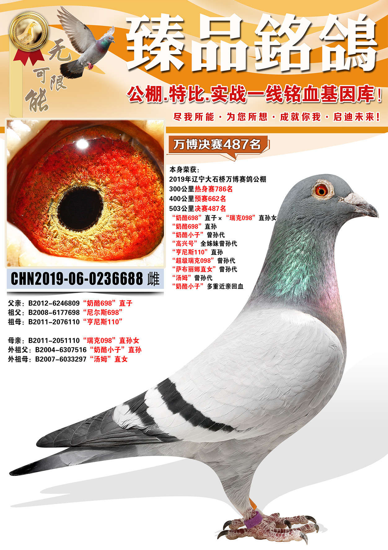 所有拍卖鸽全部血统真实!!个人鉴鸽观点不一,飞不飞天上见.血统成绩第一