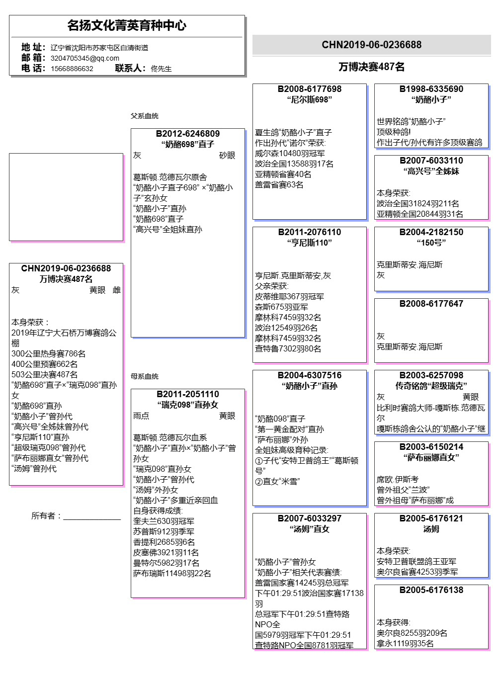 【关于血统书】所有拍卖鸽有血统书或者奖杯的本舍都以上传‘没上传就表示没有’