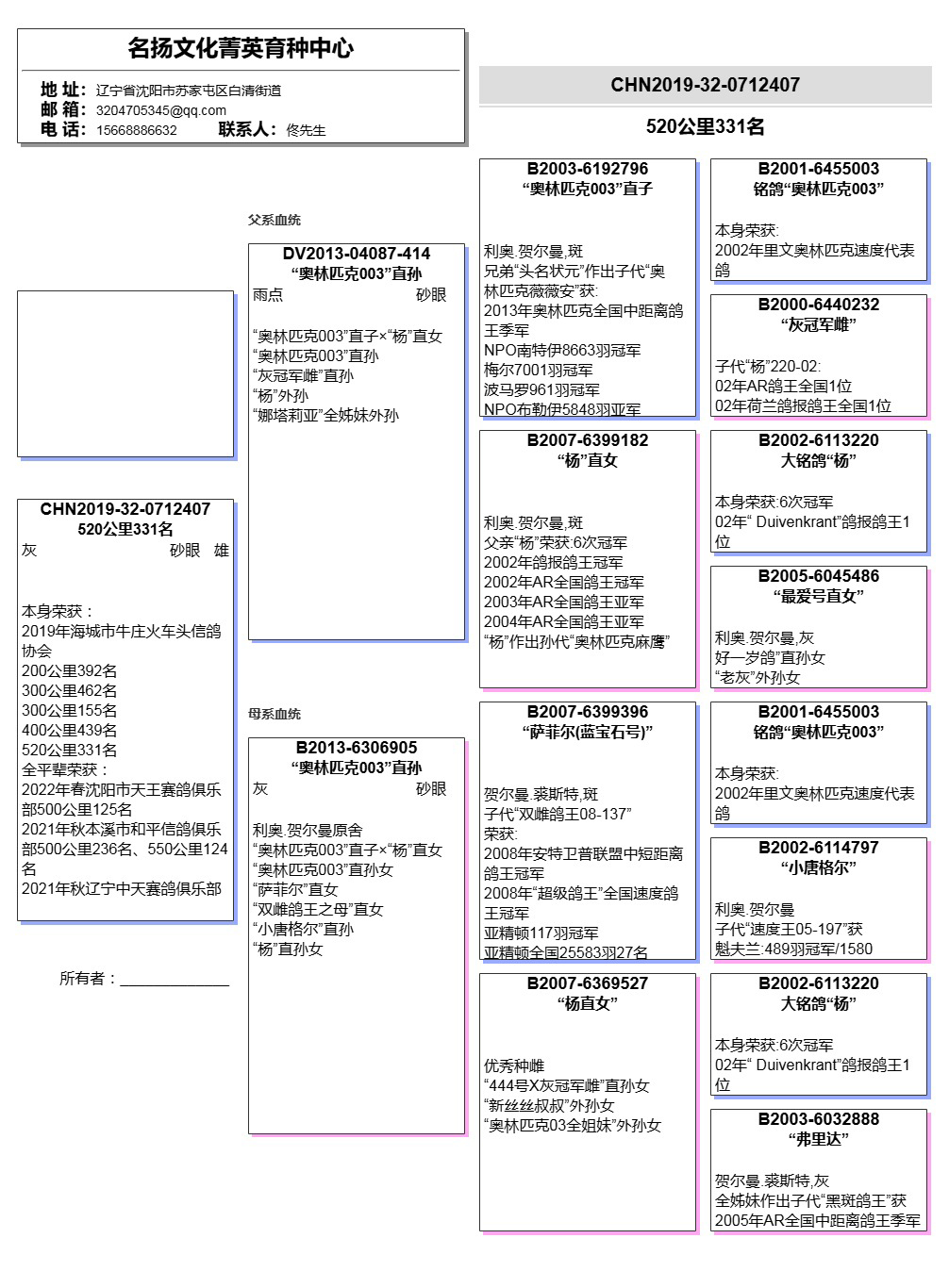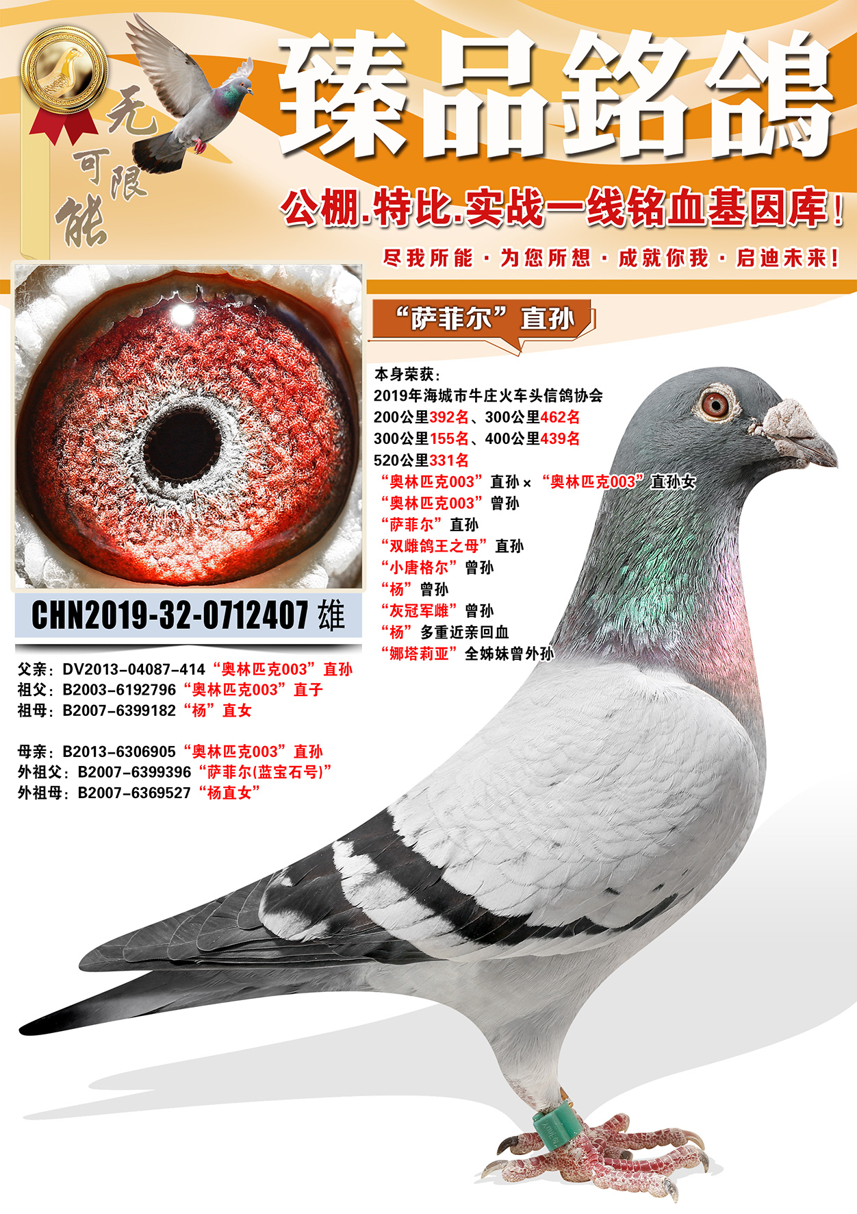 所有拍卖鸽全部血统真实!!个人鉴鸽观点不一,飞不飞天上见.血统成绩第一