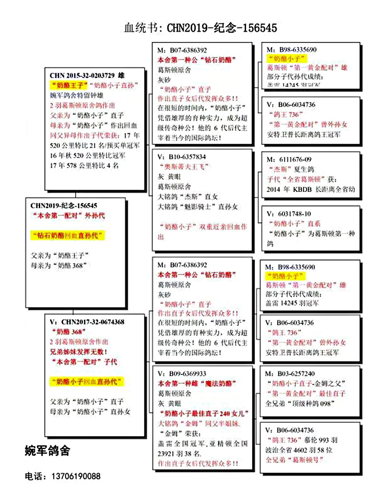 所有拍卖鸽全部血统真实!!个人鉴鸽观点不一,飞不飞天上见.血统成绩第一