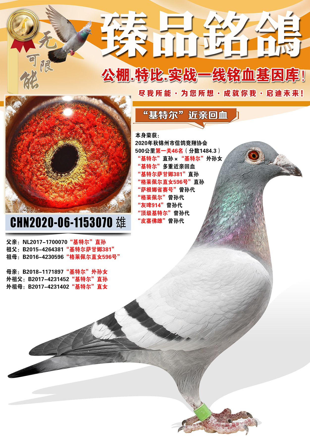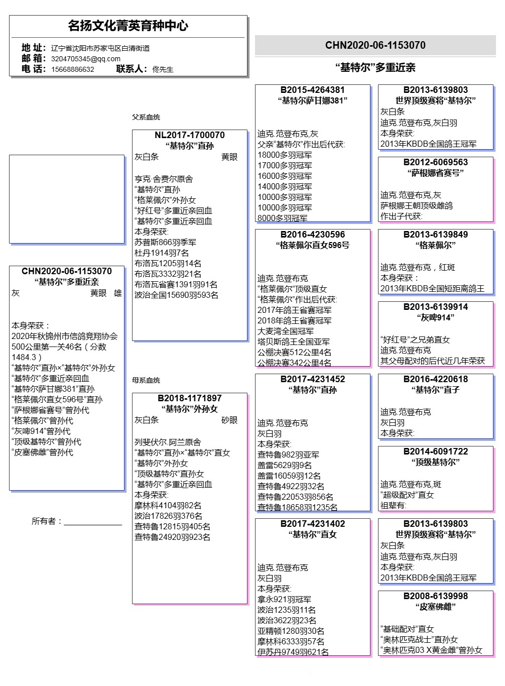 所有拍卖鸽全部血统真实!!个人鉴鸽观点不一,飞不飞天上见.血统成绩第一