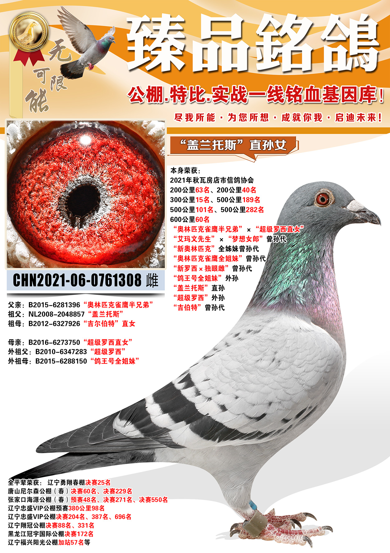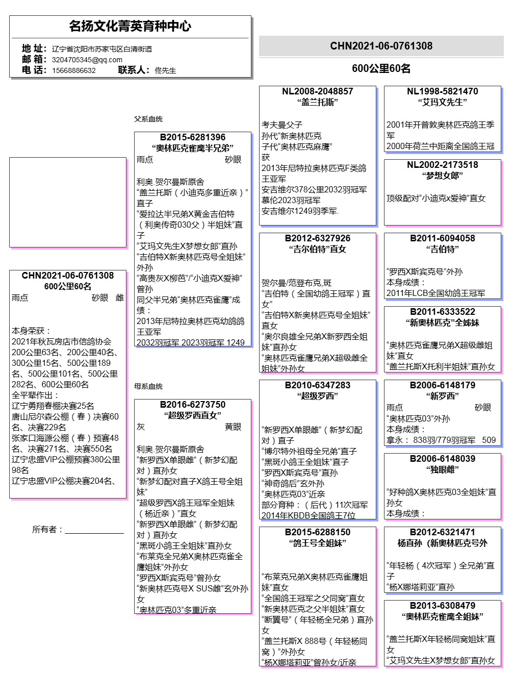 所有拍卖鸽全部血统真实!!个人鉴鸽观点不一,飞不飞天上见.血统成绩第一