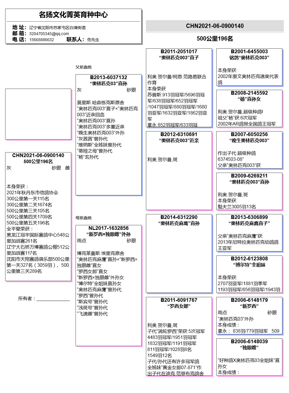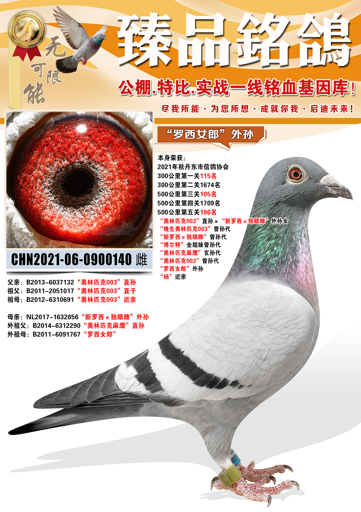 所有拍卖鸽全部血统真实!!个人鉴鸽观点不一,飞不飞天上见.血统成绩第一