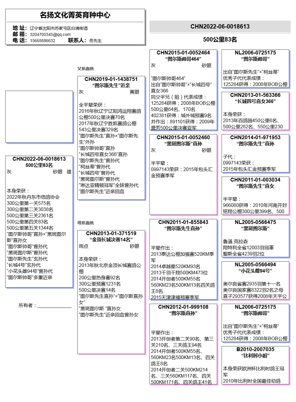 所有拍卖鸽全部血统真实!!个人鉴鸽观点不一,飞不飞天上见.血统成绩第一