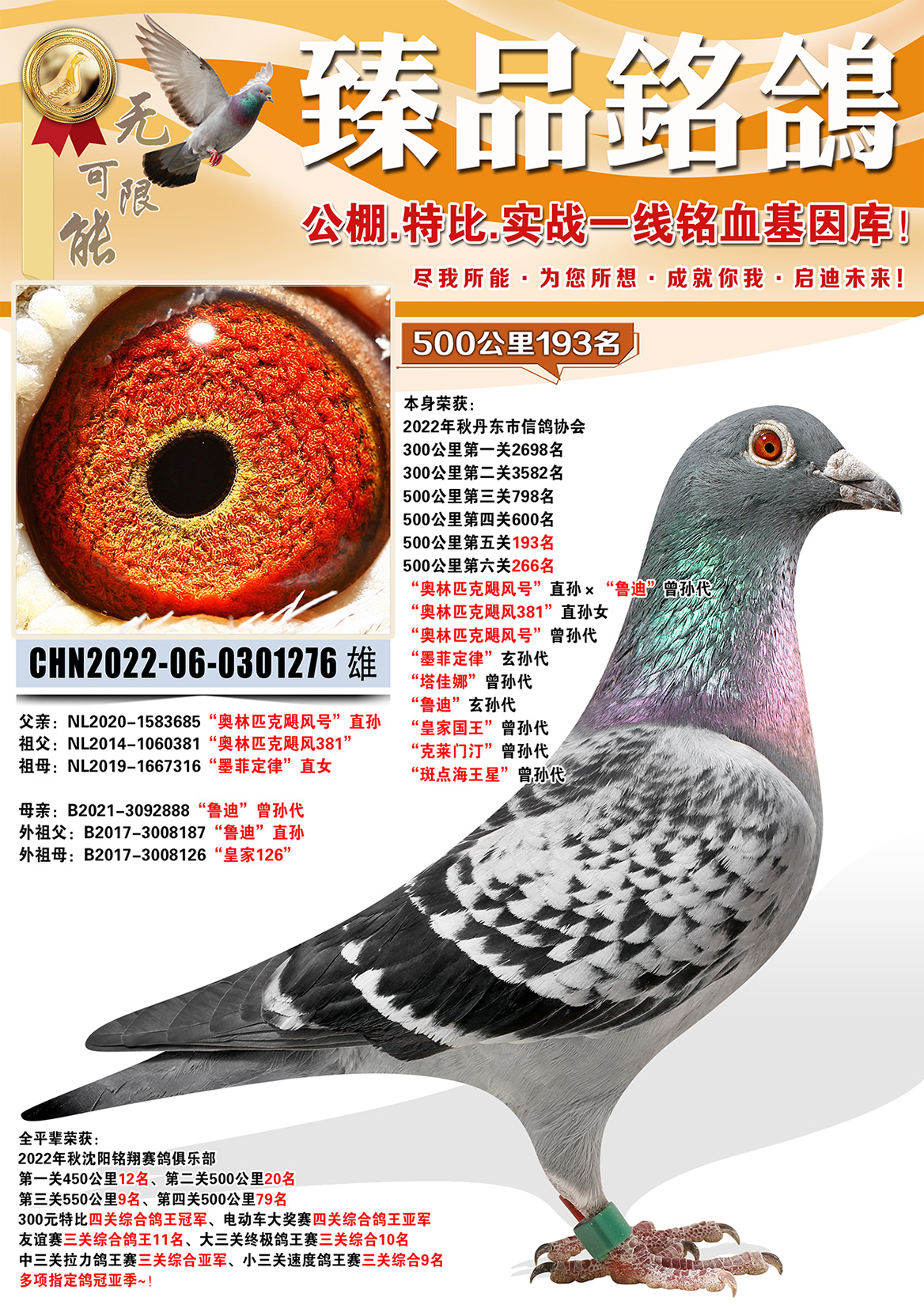 所有拍卖鸽全部血统真实!!个人鉴鸽观点不一,飞不飞天上见.血统成绩第一