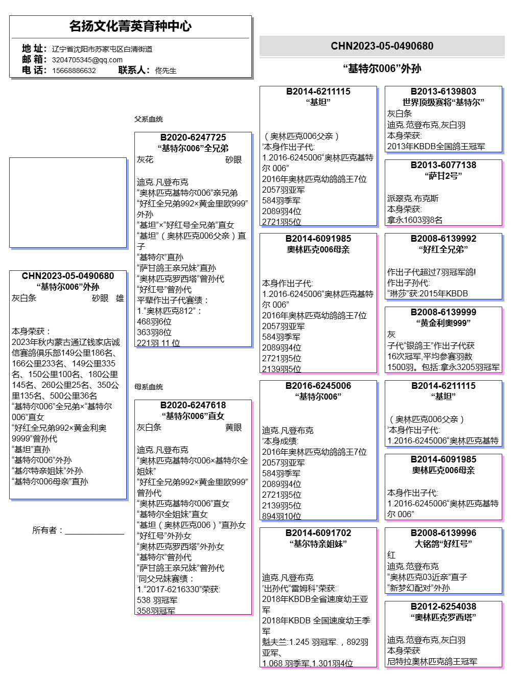 父亲:B2020-6247725“基特尔006”全兄弟