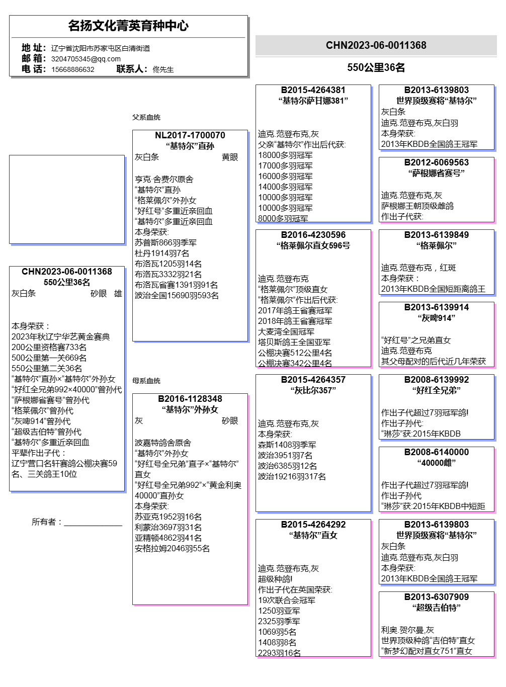 所有拍卖鸽全部血统真实!!个人鉴鸽观点不一,飞不飞天上见.血统成绩第一