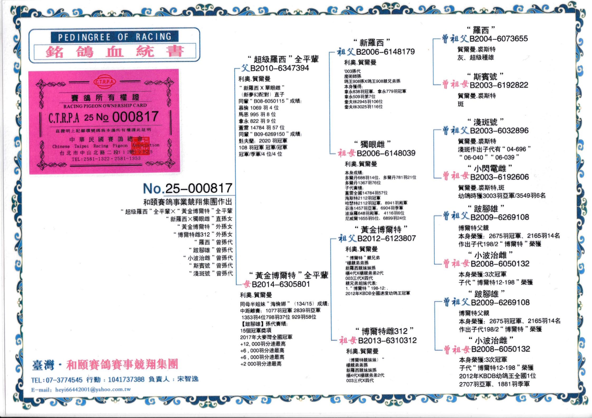 【关于血统书】所有拍卖鸽有血统书或者奖杯的本舍都以上传‘没上传就表示没有’