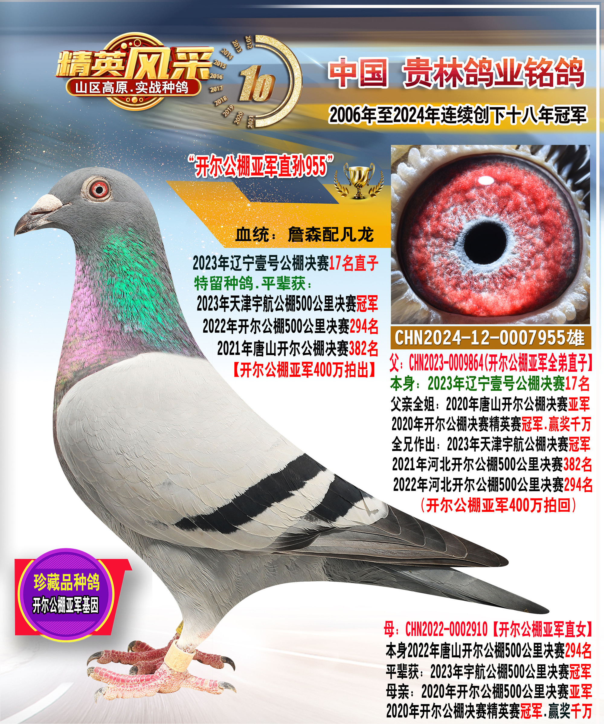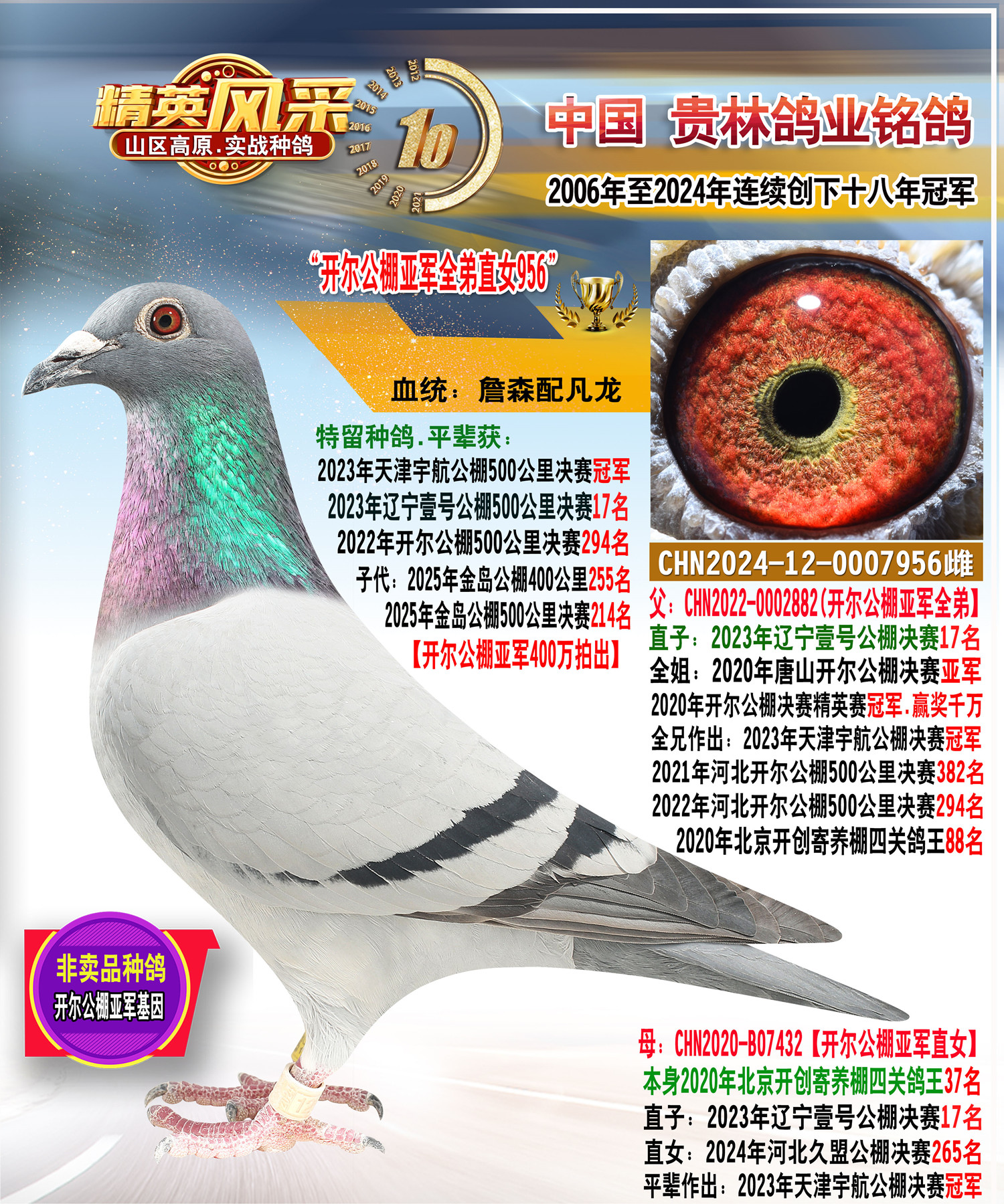 ★贵林鸽业2006年至2024年连续创下十八年冠军记录!200公里冠军.300公里冠军.400公里冠军.500公里冠军.公棚冠军.特比环冠军.三关鸽王冠军.四关鸽王冠军.大小冠军无一缺席!