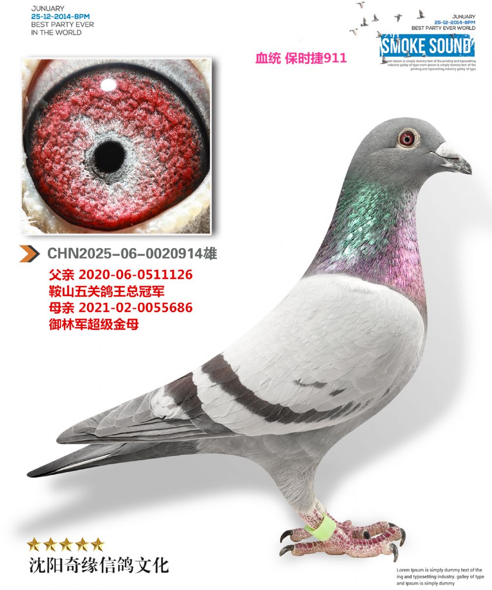 2、注明:鸽子在照片制作中,通常会使用Photoshop的图片翻转功能,造成视觉上足环位置的颠倒(左右脚互换),鸽子足环的位置以实物为准;