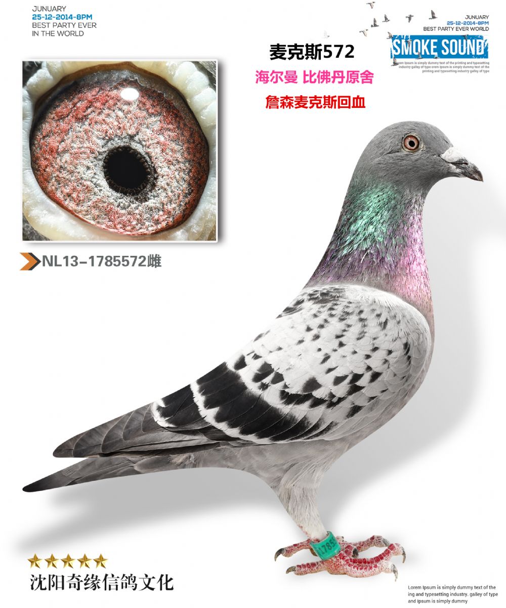 2、注明:鸽子在照片制作中,通常会使用Photoshop的图片翻转功能,造成视觉上足环位置的颠倒(左右脚互换),鸽子足环的位置以实物为准;