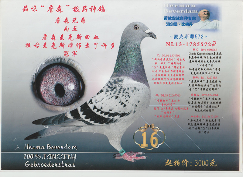 - 当前查看拍卖鸽:荷兰 海尔曼 比佛丹(黄金配母)
