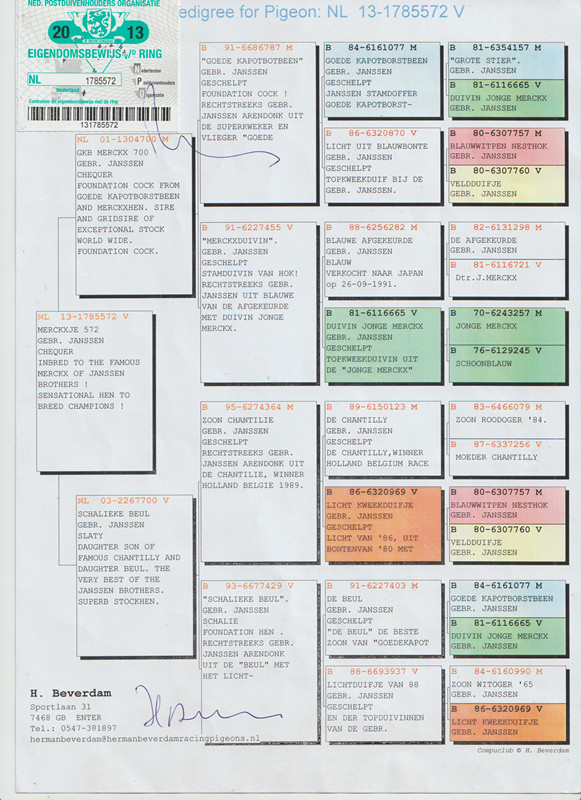 3、注明:请注意看种鸽和血统图片,有的种鸽环卡丢失,有些奖鸽无环卡和奖状和血统,介意请勿出价;