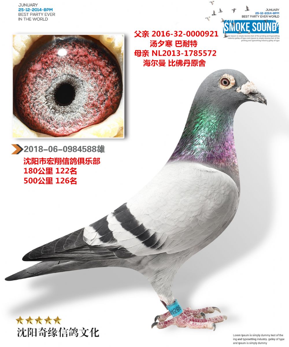 2、注明:鸽子在照片制作中,通常会使用Photoshop的图片翻转功能,造成视觉上足环位置的颠倒(左右脚互换),鸽子足环的位置以实物为准;