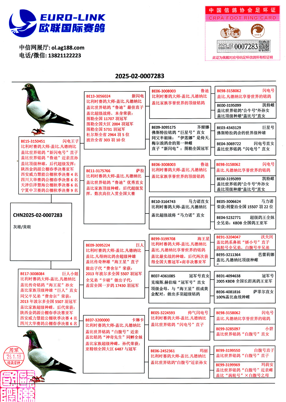 - 当前查看拍卖鸽:盖比家族经典配对直子