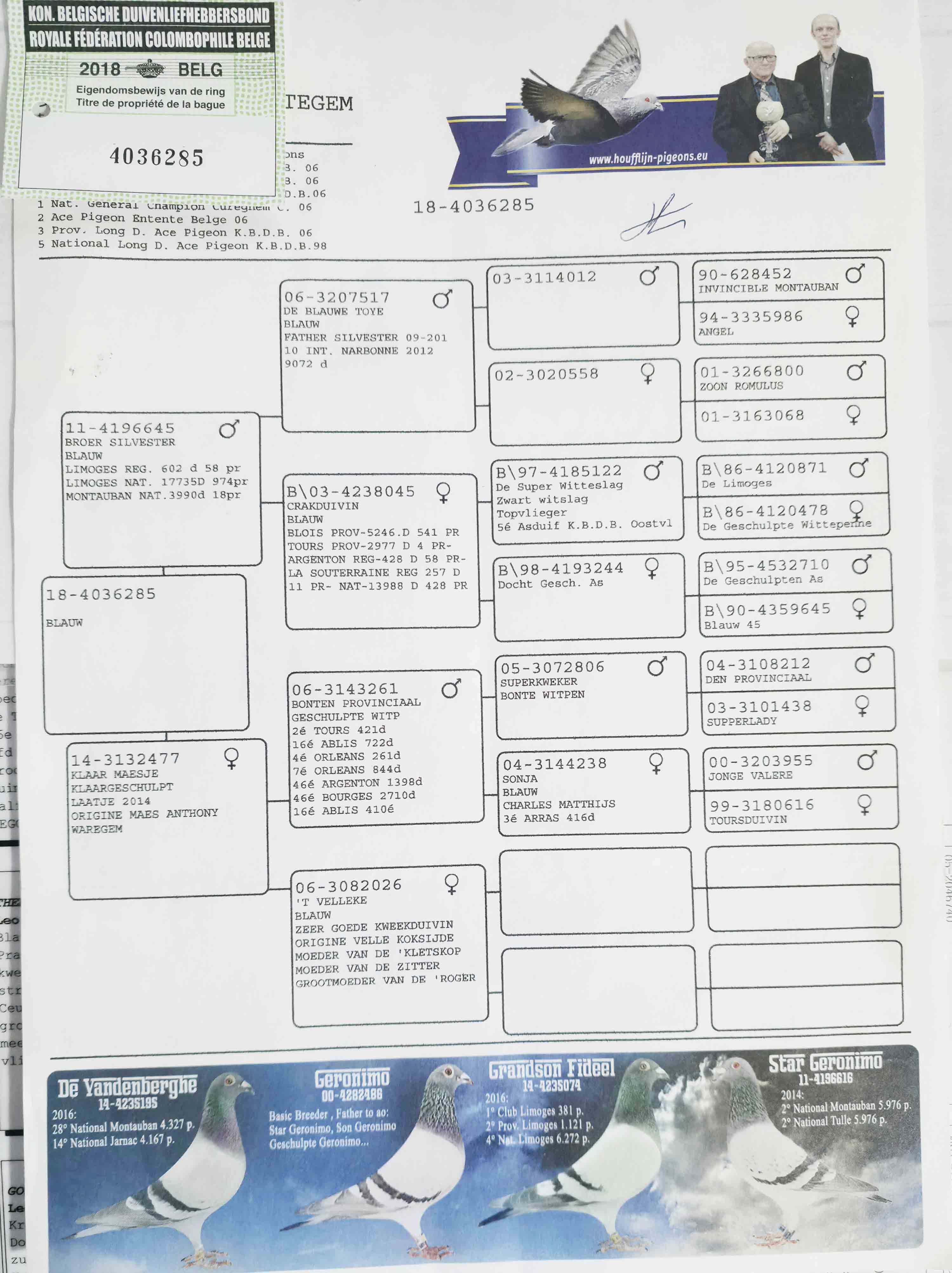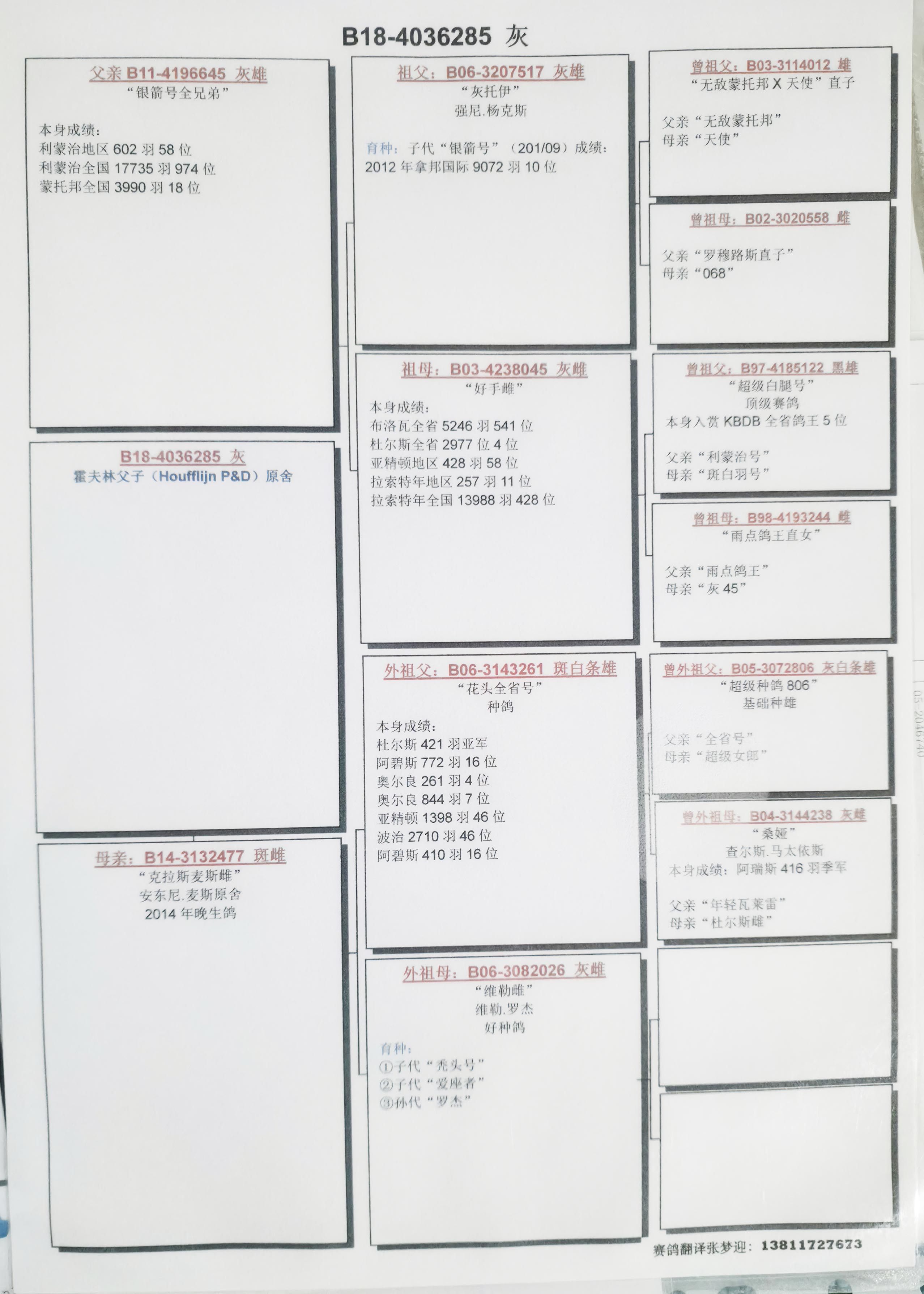 1644773 7《开尔鸽业》奇迹鸽王直子x黑劲力孙女 ¥200元 1次
