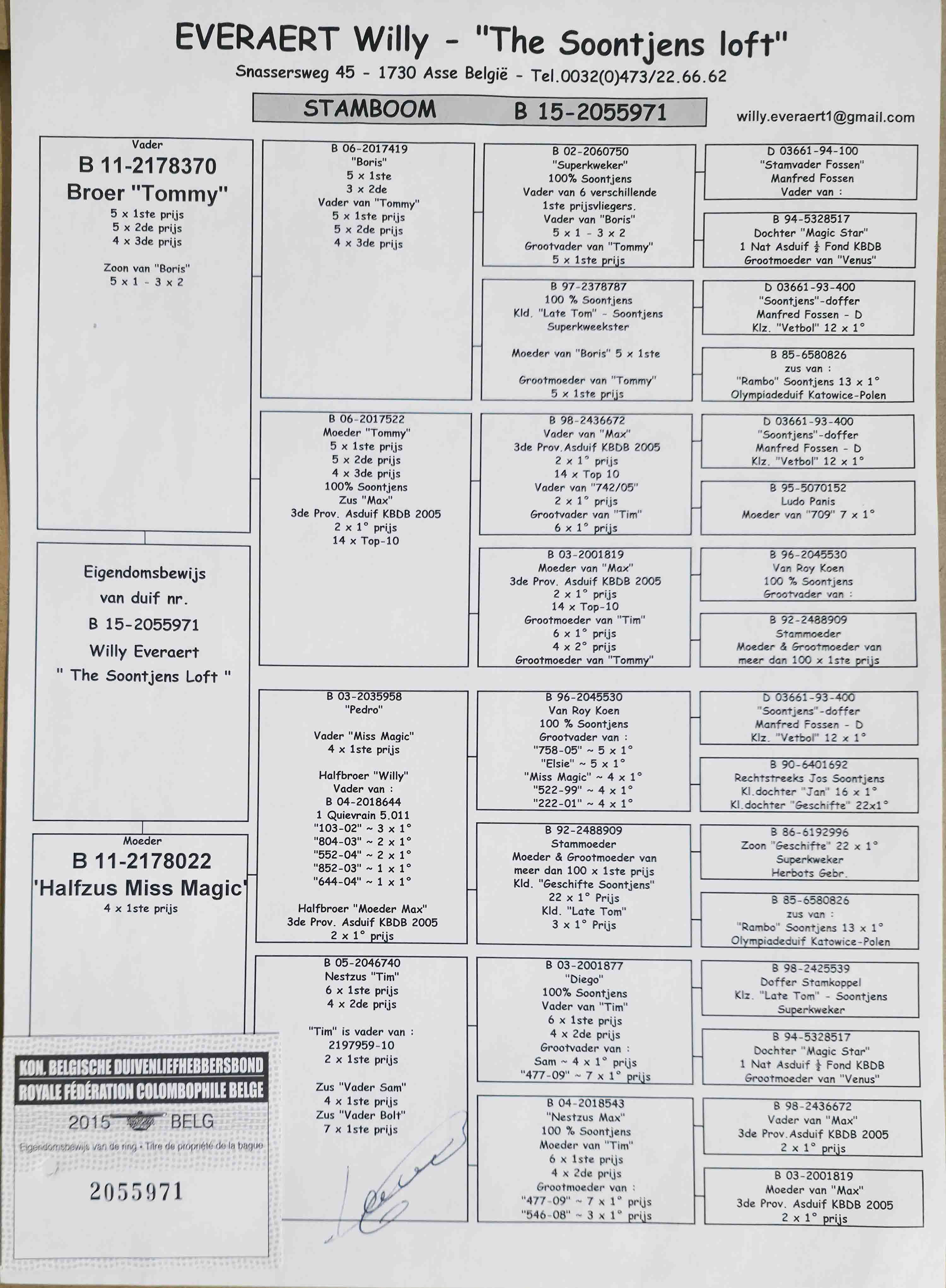 1644773 7《开尔鸽业》奇迹鸽王直子x黑劲力孙女 ¥200元 1次