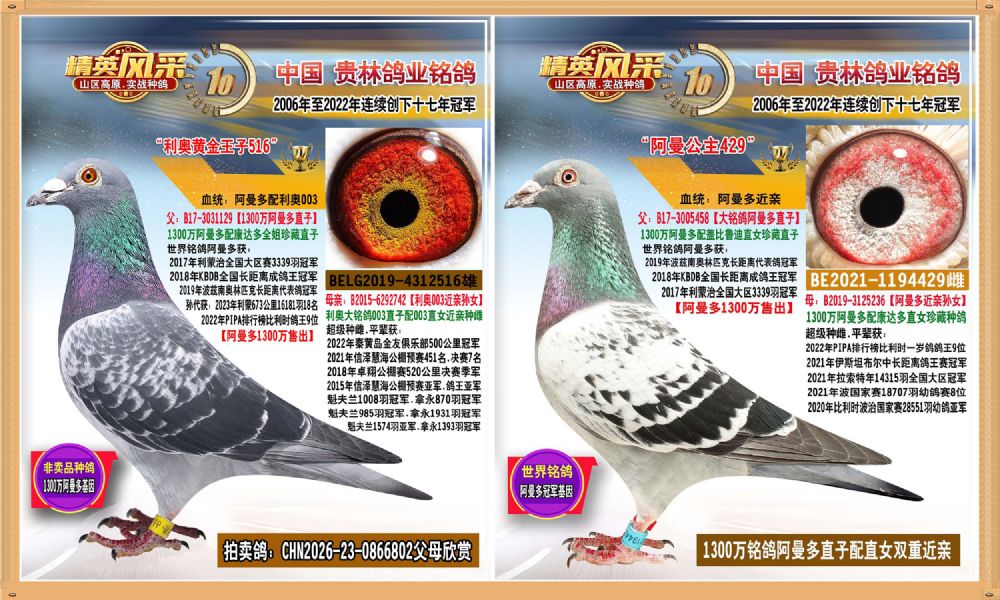 - 当前查看拍卖鸽:1300万阿曼多直孙配阿曼多孙女近亲种雄