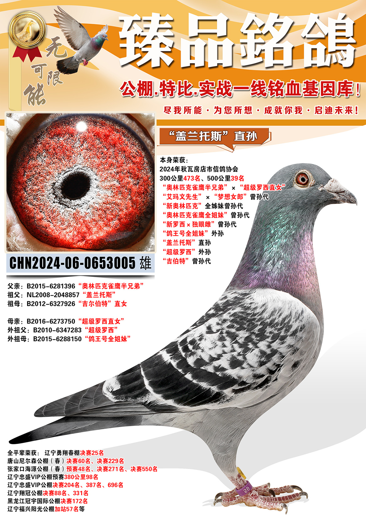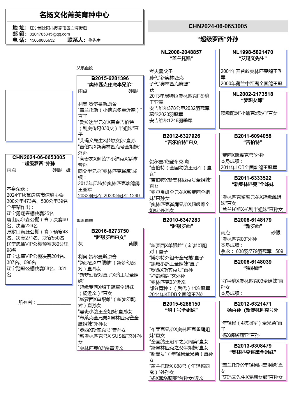 所有拍卖鸽全部血统真实!!个人鉴鸽观点不一,飞不飞天上见.血统成绩第一