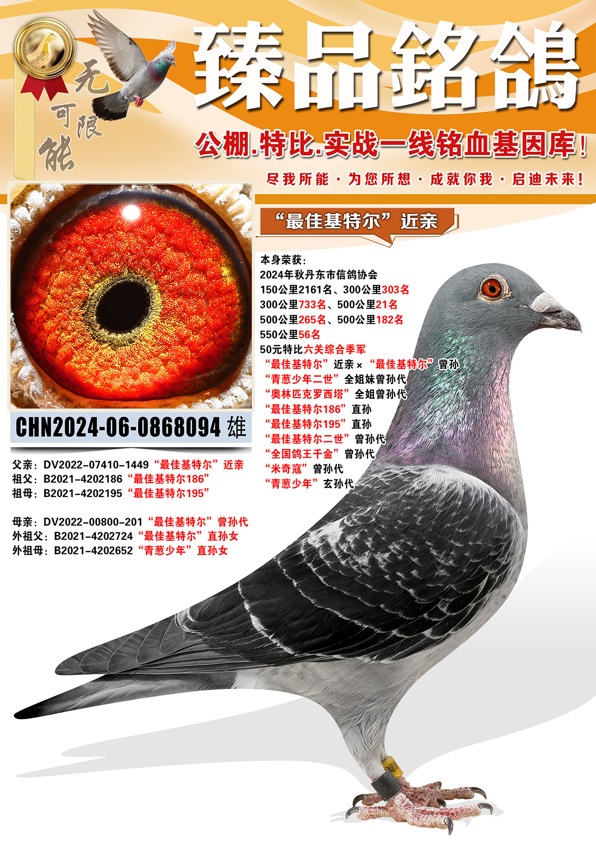 所有拍卖鸽全部血统真实!!个人鉴鸽观点不一,飞不飞天上见.血统成绩第一