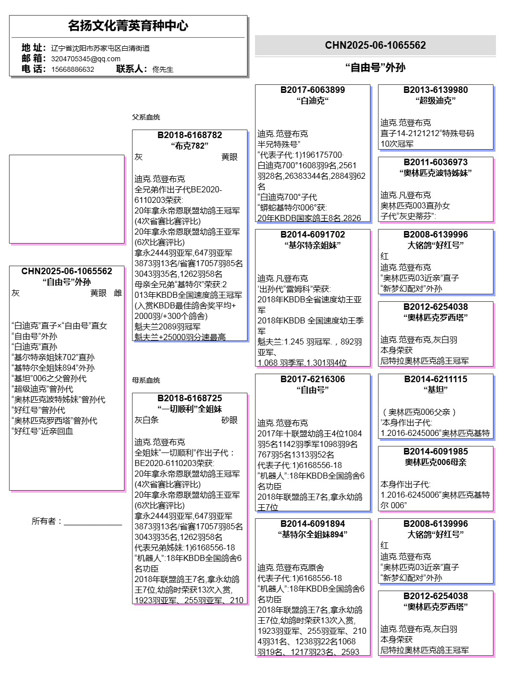 所有拍卖鸽全部血统真实!!个人鉴鸽观点不一,飞不飞天上见.血统成绩第一