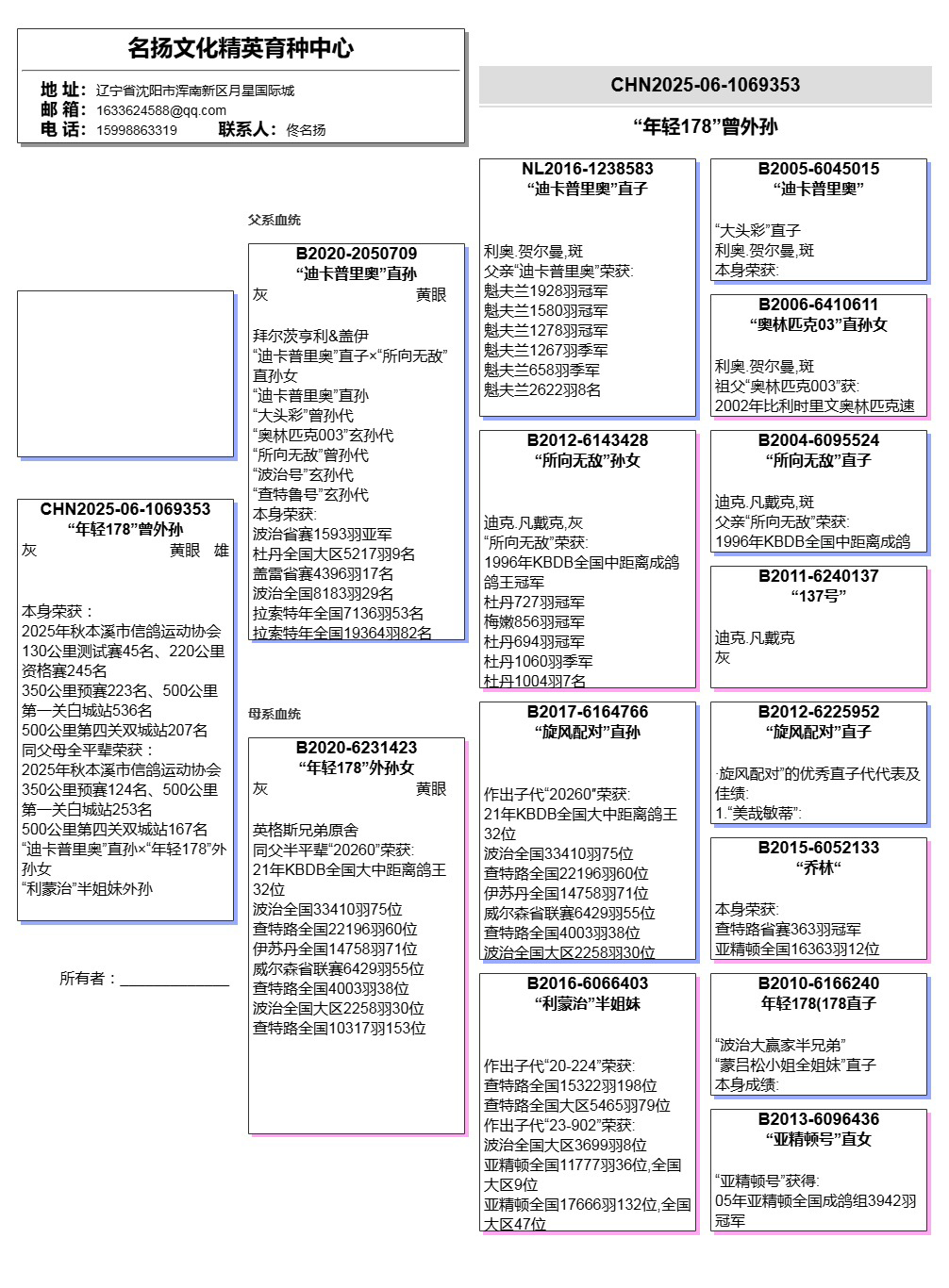 所有拍卖鸽全部血统真实!!个人鉴鸽观点不一,飞不飞天上见.血统成绩第一