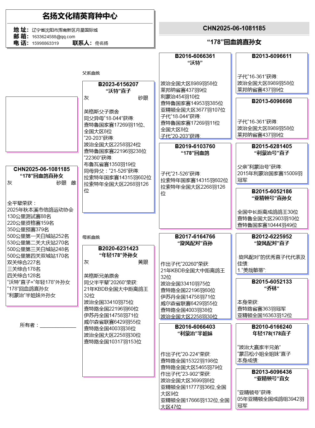 【关于血统书】所有拍卖鸽有血统书或者奖杯的本舍都以上传‘没上传就表示没有’