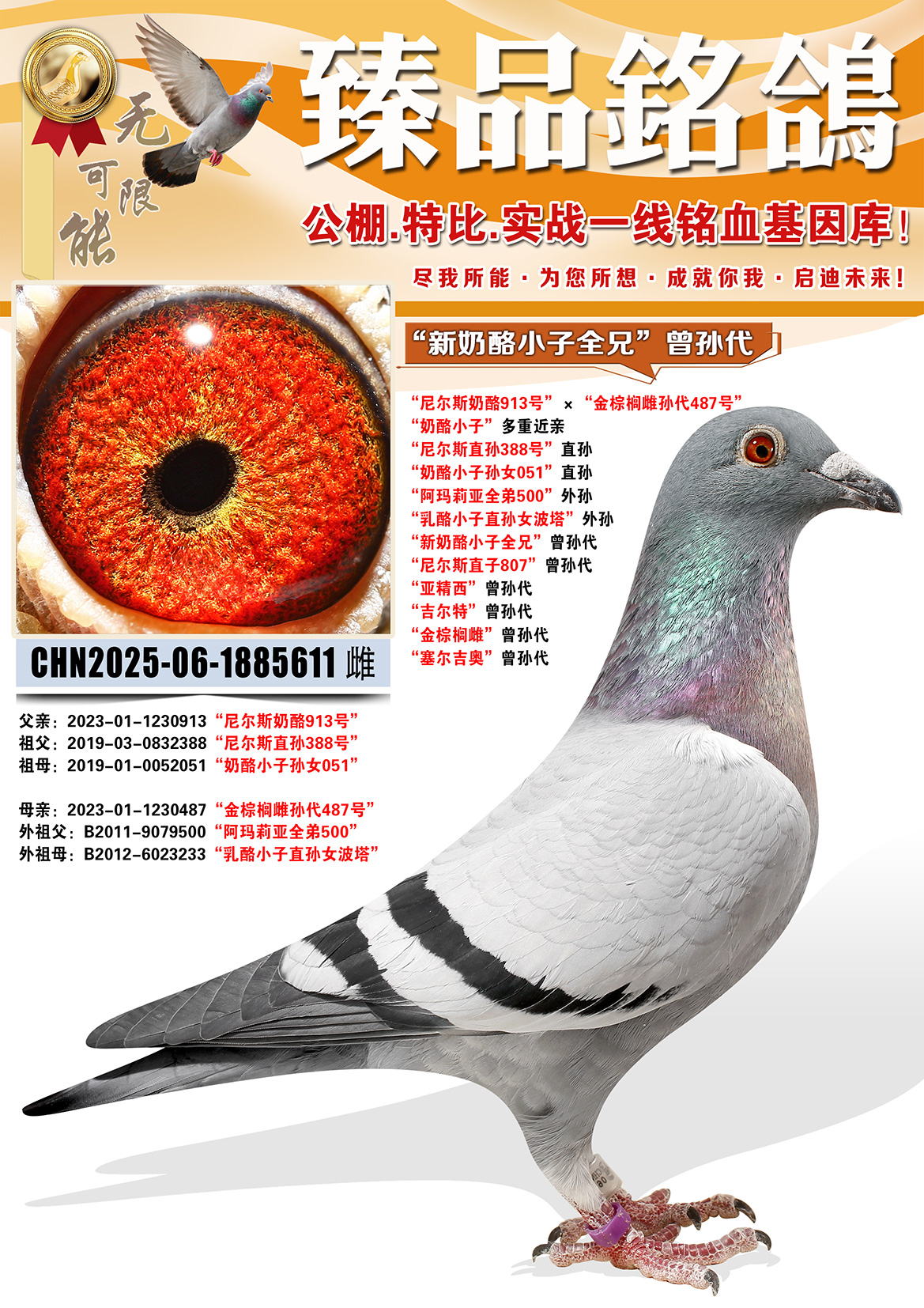 所有拍卖鸽全部血统真实!!个人鉴鸽观点不一,飞不飞天上见.血统成绩第一