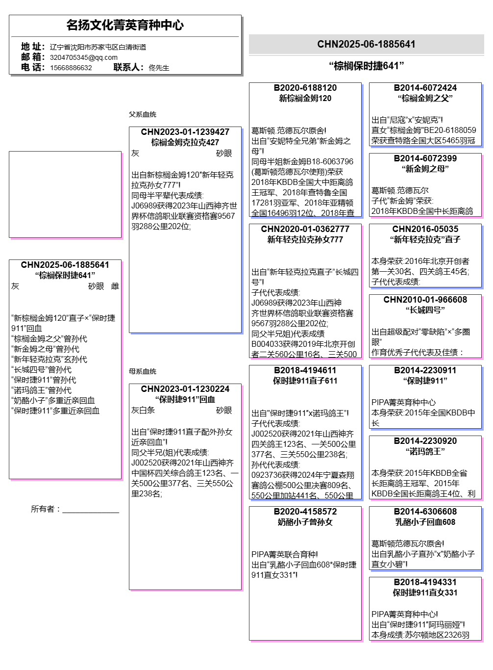 所有拍卖鸽全部血统真实!!个人鉴鸽观点不一,飞不飞天上见.血统成绩第一