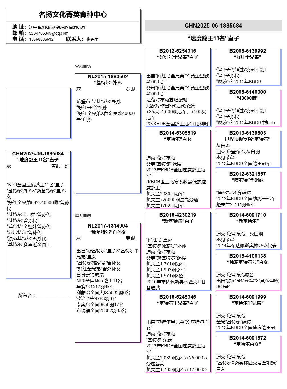 所有拍卖鸽全部血统真实!!个人鉴鸽观点不一,飞不飞天上见.血统成绩第一