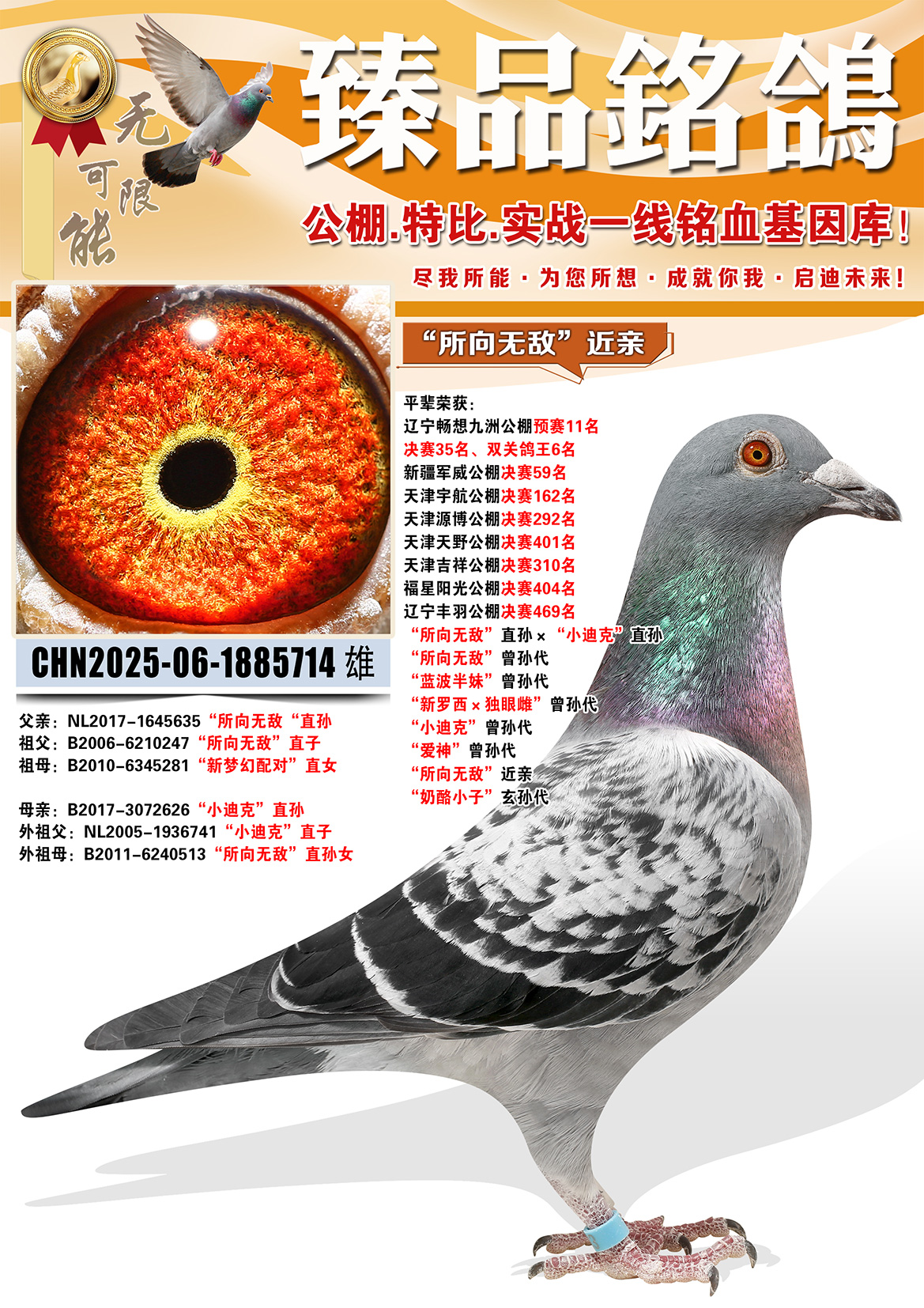 所有拍卖鸽全部血统真实!!个人鉴鸽观点不一,飞不飞天上见.血统成绩第一