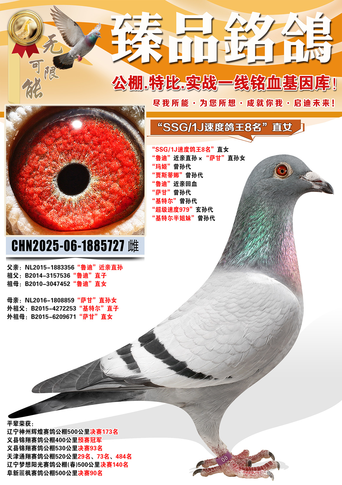 所有拍卖鸽全部血统真实!!个人鉴鸽观点不一,飞不飞天上见.血统成绩第一