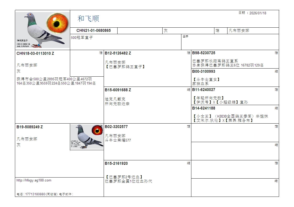 - 当前查看拍卖鸽:凡布丽安娜500冠军直子