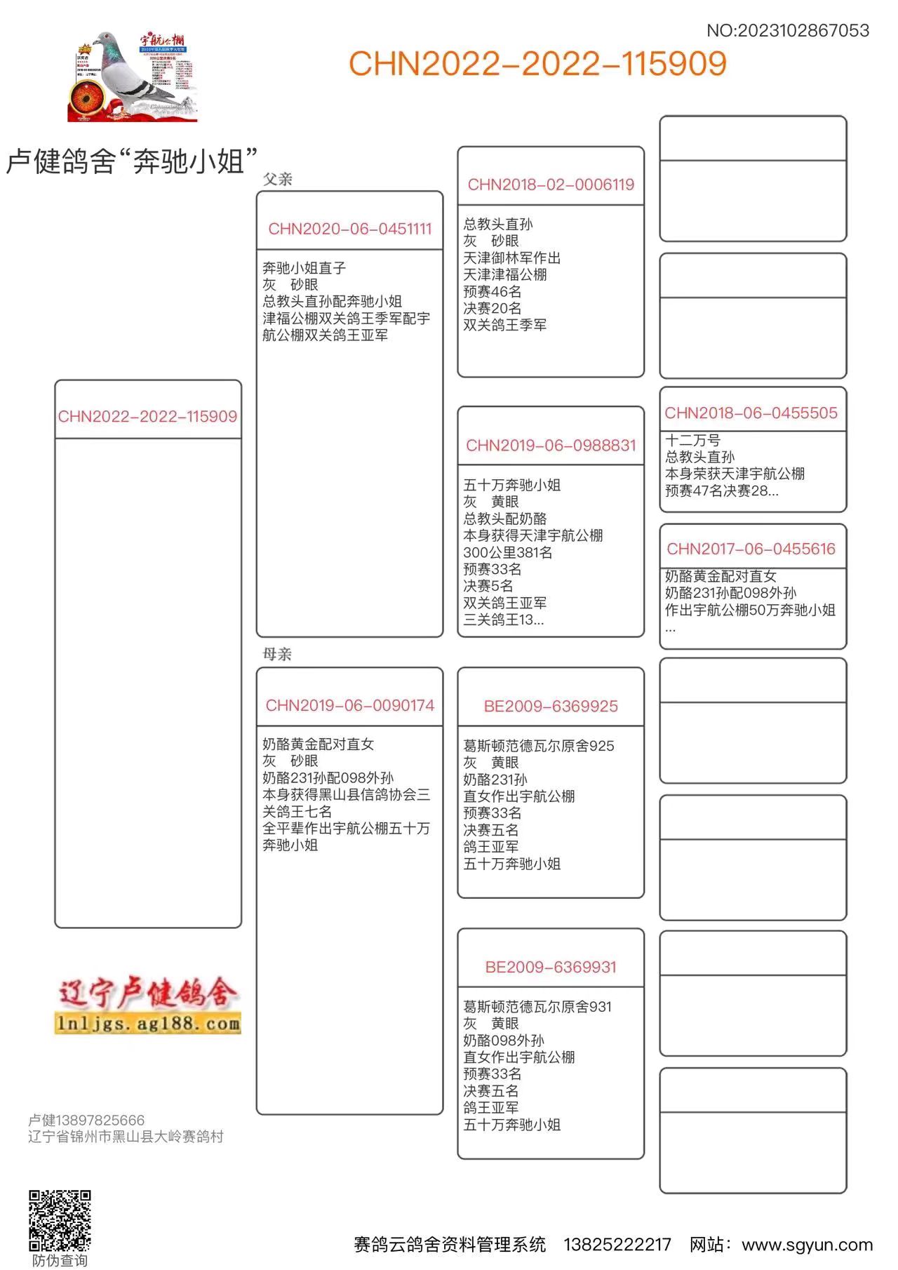 3、注明:请注意看种鸽和血统图片,有的种鸽环卡丢失,有些奖鸽无环卡和奖状和血统,介意请勿出价;