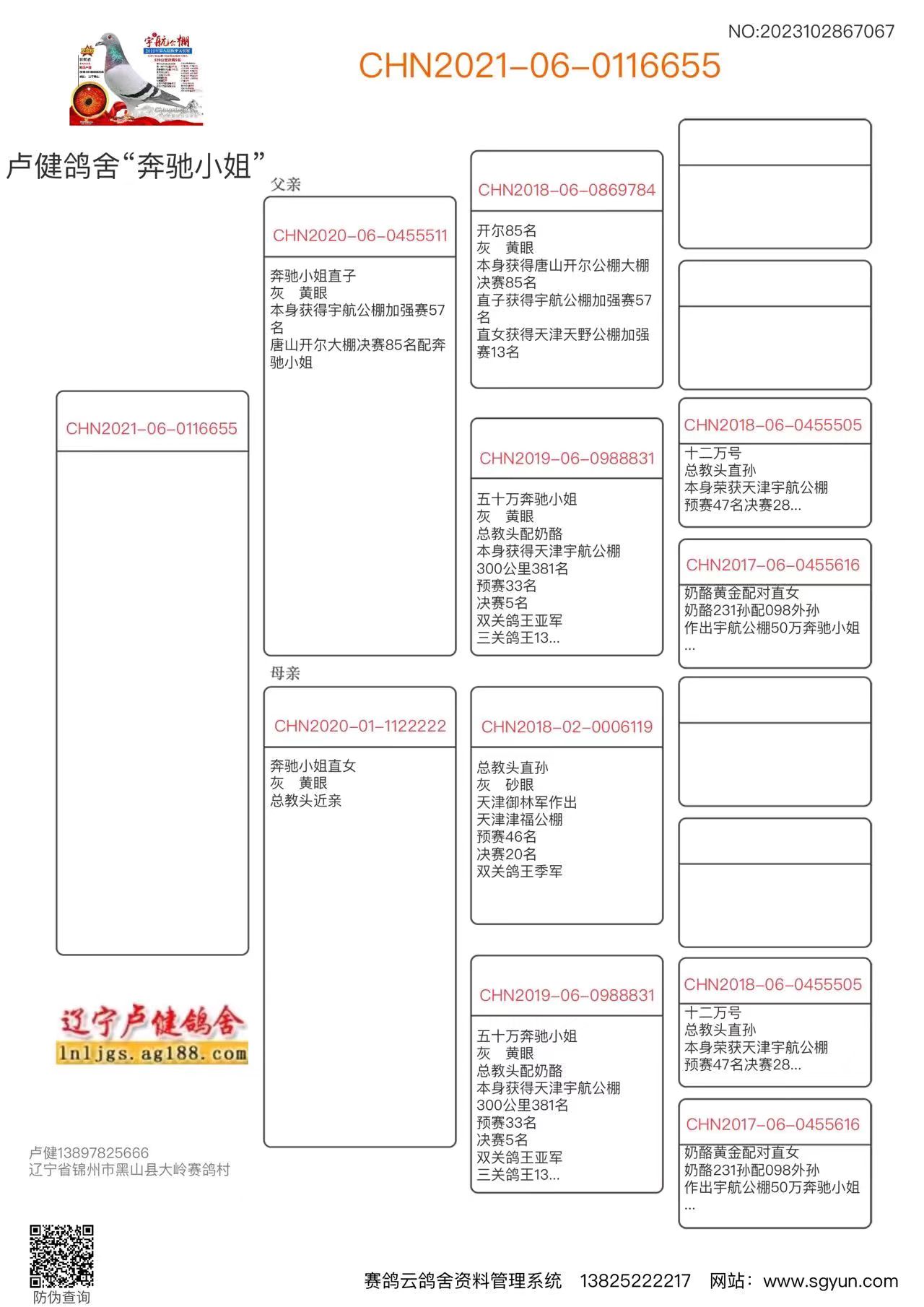 3、注明:请注意看种鸽和血统图片,有的种鸽环卡丢失,有些奖鸽无环卡和奖状和血统,介意请勿出价;