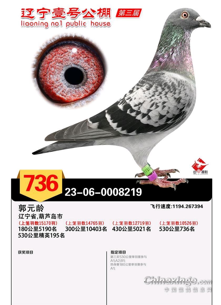 - 当前查看拍卖鸽:郭元龄(辽宁壹号公棚决赛736名)