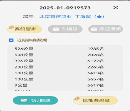 北京首信鸽业参加天津宇翔公棚参赛鸽,两次加战归巢。