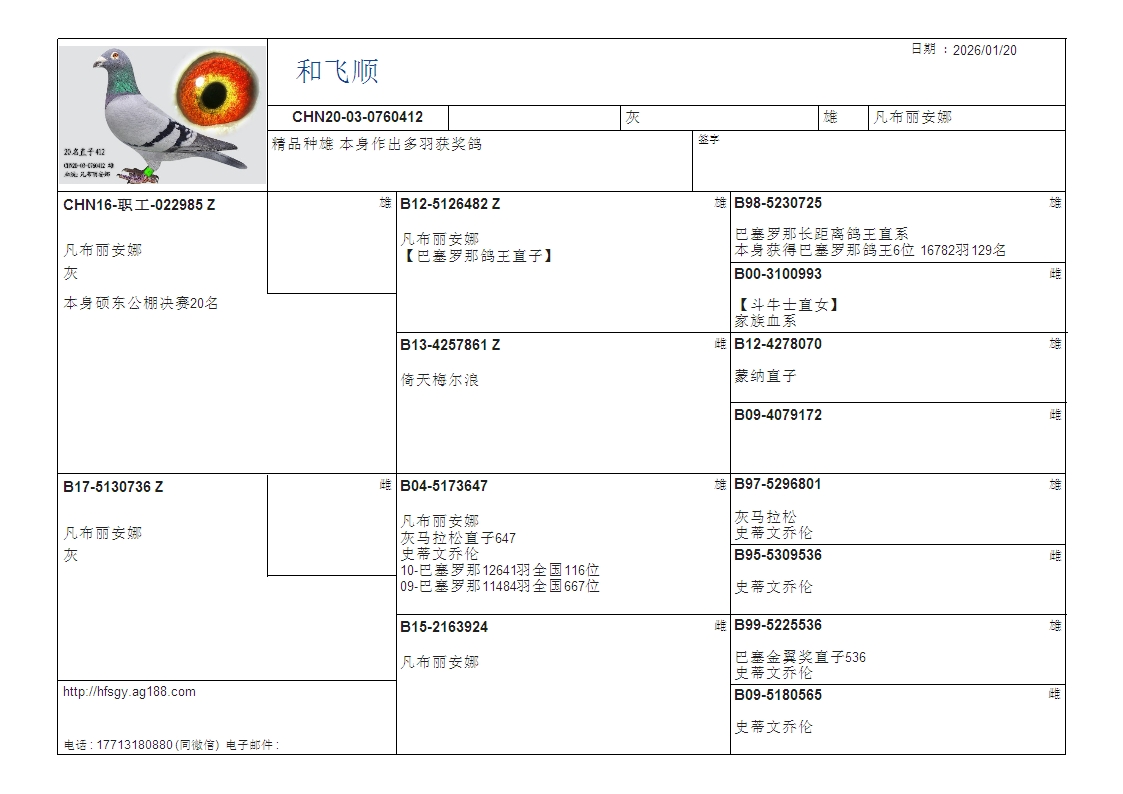 - 当前查看拍卖鸽:凡布丽安娜 超级优秀雄