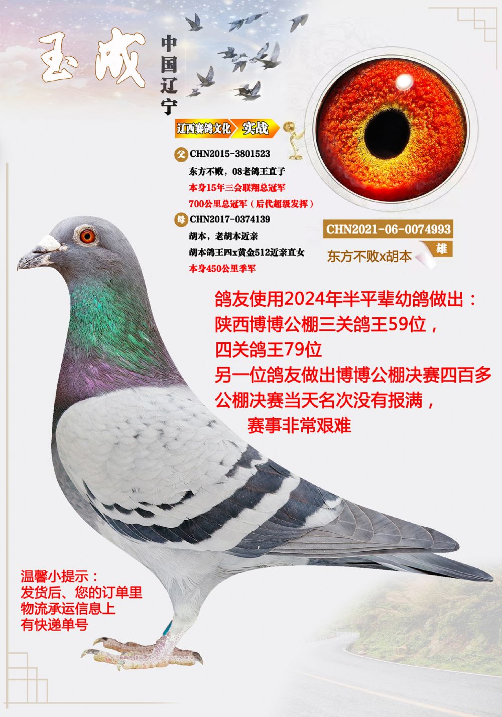| 1645104 | 东方不败x胡本,2025年四次500公里成绩鸽,非常好 | ¥0元 | 0次 |